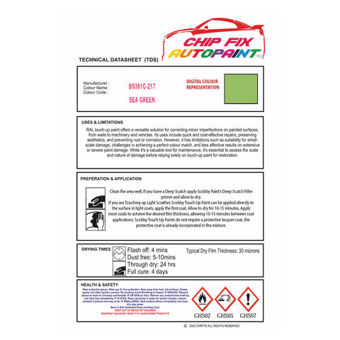 Bs381C-217 Sea Green Window Pvc,Upvc Plastic green Touch Up Paint