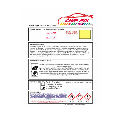 Bs381C 315 Grapefruit Bicycle Frame Acrylic Yellow Metal Bike Touch Up Paint