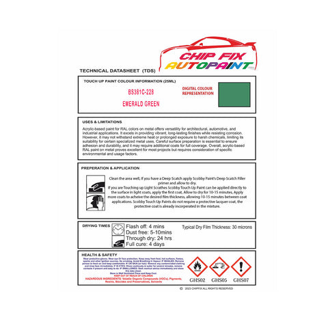 Bs381C Bs381C-228 Emerald Green For Bicycle Frames Acrylic Green Metal Bike 250Ml Tin