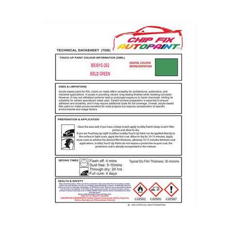 Bold Green Colour Code: Bs381C-262 Anti Rust Properties, Solid Paint Finish Bs381C-262 Bold Greengreen
