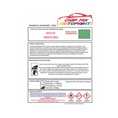 Verdigris Green Colour Code: Bs381C-280 Anti Rust Properties, Solid Paint Finish Bs381C-280 Verdigris Greengreen