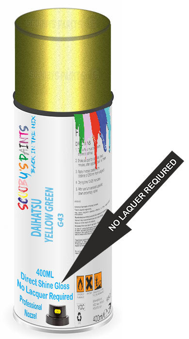 You’re just one step away from giving your Daihatsu Sirion that showroom shine with our Yellow Green Mica Metallic Code: G43 Direct Gloss Aerosol. This is the exact shade and formula used by professionals, ensuring your paint job blends seamlessly with your vehicle’s original finish. Don’t second-guess it—this high-quality, easy-to-use aerosol guarantees a perfect match every time, delivering a durable, glossy coat that looks brand new. Whether you're repairing a small scratch or refreshing the entire panel, you deserve the best finish possible. Don’t wait—click ‘Buy Now’ and watch your Sirion transform before your eyes. No more hesitation; this is the solution you've been looking for.