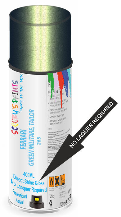 You’re just one step away from giving your Ferrari that showroom shine with our Green Militare, Tailor Made Code: 265 Direct Gloss Aerosol. This is the exact shade and formula used by professionals, ensuring your paint job blends seamlessly with your vehicle’s original finish. Don’t second-guess it—this high-quality, easy-to-use aerosol guarantees a perfect match every time, delivering a durable, glossy coat that looks brand new. Whether you're repairing a small scratch or refreshing the entire panel, you deserve the best finish possible. Don’t wait—click ‘Buy Now’ and watch your transform before your eyes. No more hesitation; this is the solution you've been looking for.