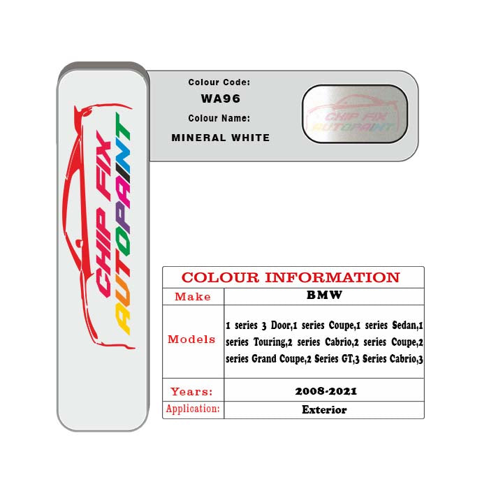 Paint For Bmw 1 Series Mineral White Wa96 2008-2022 White Touch Up Paint
