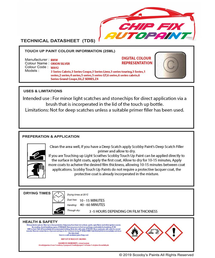 Paint For Bmw 1 Series Orion Silver Wa92 2009-2018 Grey Touch Up Paint