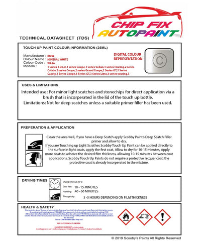 Paint For Bmw 7 Series Limo Mineral White Wa96 2008-2022 White Touch Up Paint