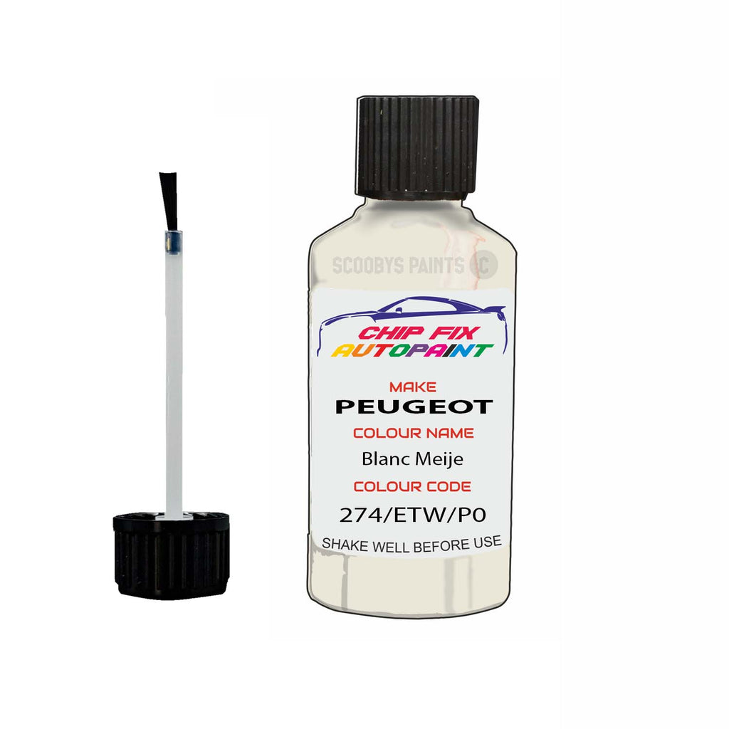 Paint For Peugeot 106 Blanc Meije 274, ETW, P0WT 1977-2001 White Touch Up Paint