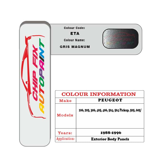 Paint For Peugeot 106 Gris Magnum ETA 1988-1996 Silver Grey Touch Up Paint