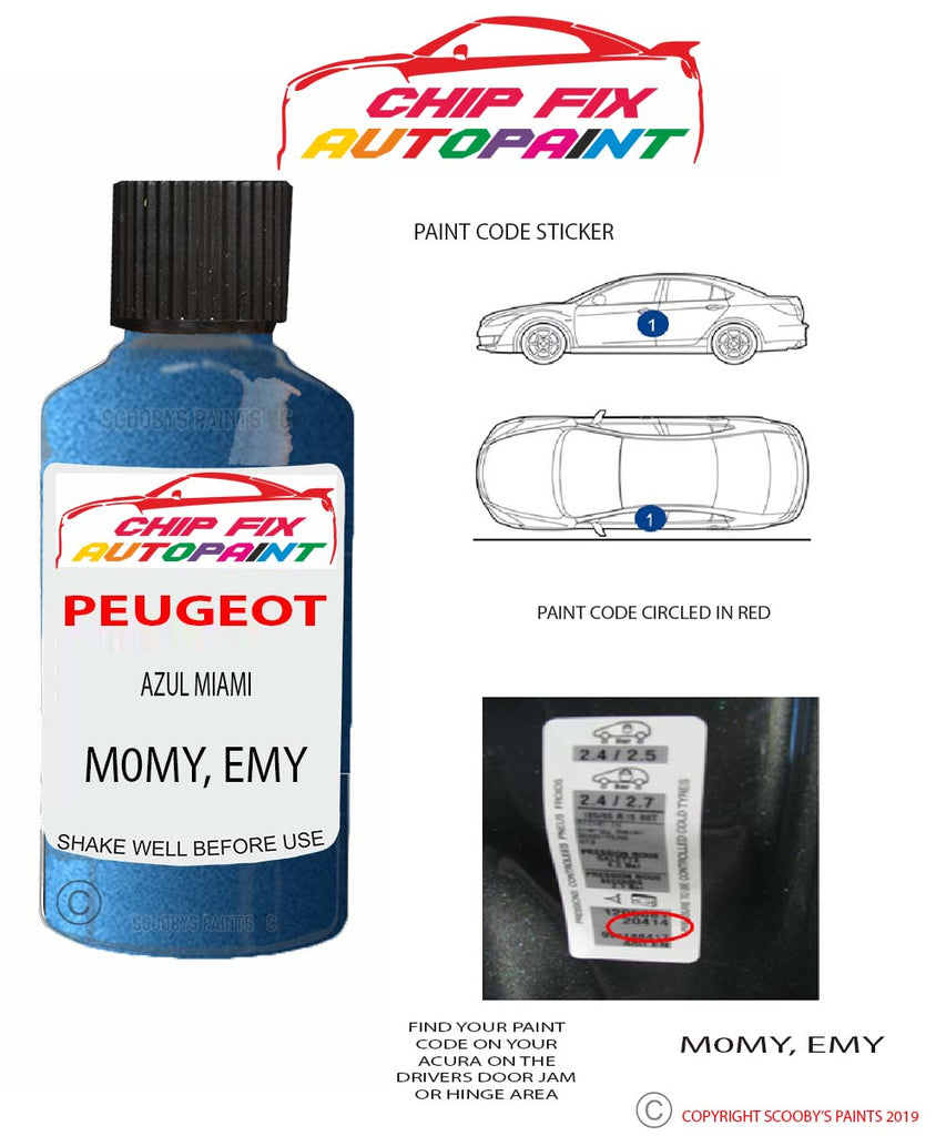 Paint For Peugeot 406 Azul Miami M0MY, EMY 1989-1998 Blue Touch Up Paint
