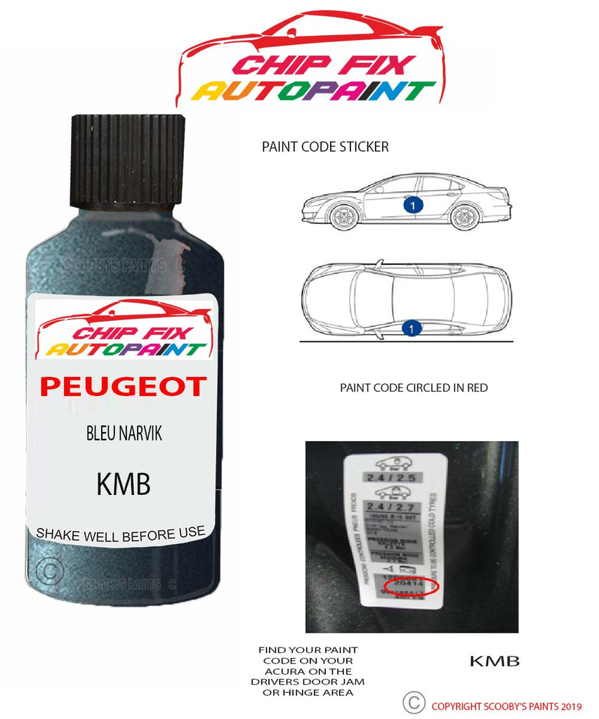 Paint For Peugeot 607 Bleu Narvik KMB 2006-2007 Blue Touch Up Paint