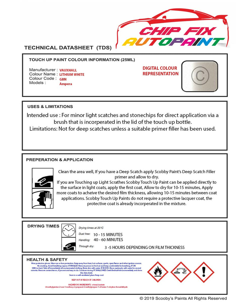 Paint For Vauxhall Ampera Lithium White Gbn 2012-2012 White Touch Up Paint