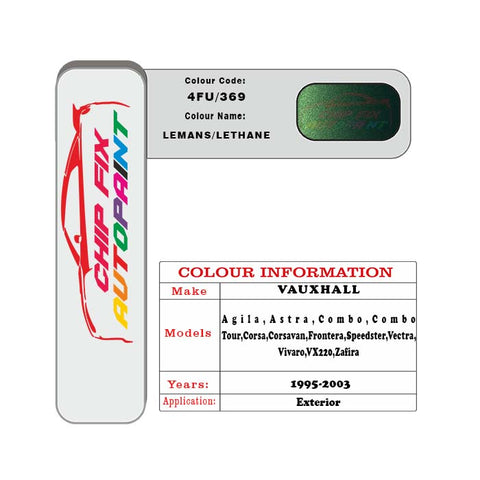 Paint For Vauxhall Astra Lemans/Lethane Green 4Fu/369 1995-2003 Green Touch Up Paint