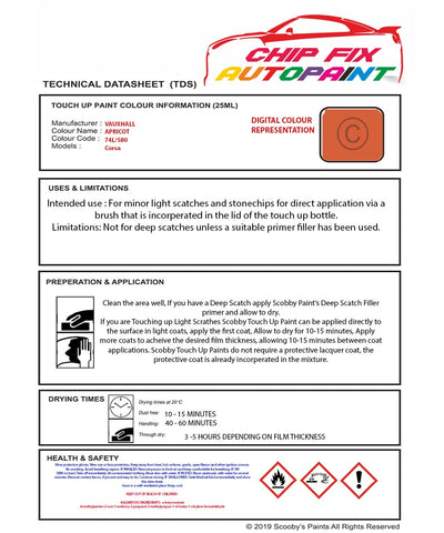 Paint For Vauxhall Corsa Apricot 74L/580 1997-1999 Yellow Touch Up Paint