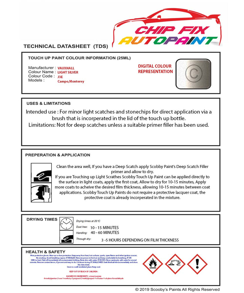 Paint For Vauxhall Monterey Light Silver J3E 1992-2001 Grey Touch Up Paint