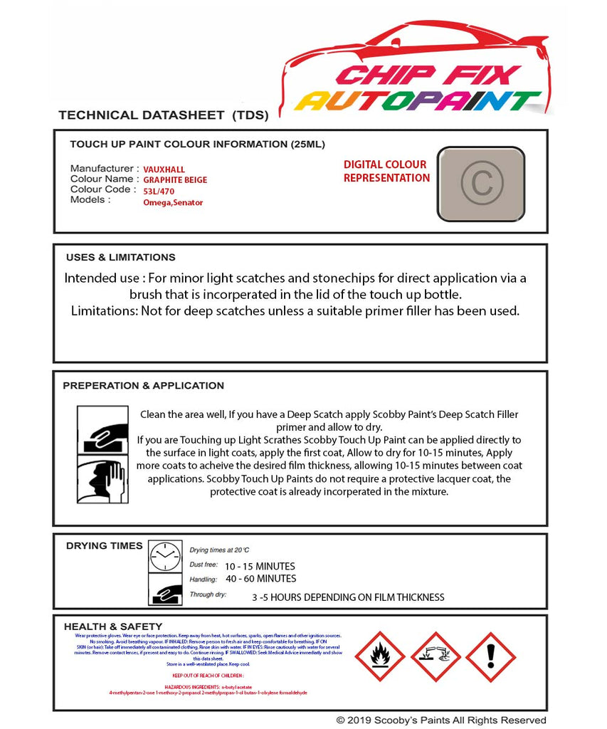 Paint For Vauxhall Senator Graphite Beige 53L/470 1986-1993 0 Touch Up Paint