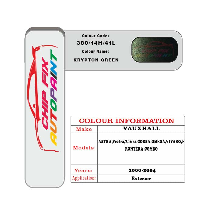 Paint For Vauxhall Vectra Krypton Green 380/14H/41L 2000-2004 Green Touch Up Paint