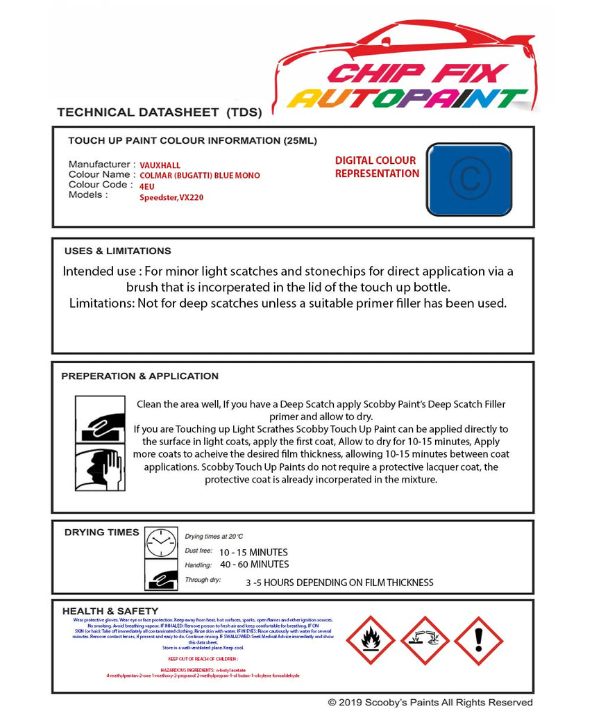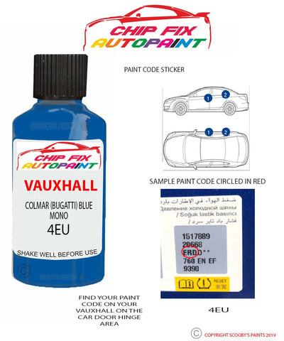 Paint For Vauxhall Vx220 Colmar (Bugatti) Blue Mono 4Eu 2001-2003 Blue Touch Up Paint