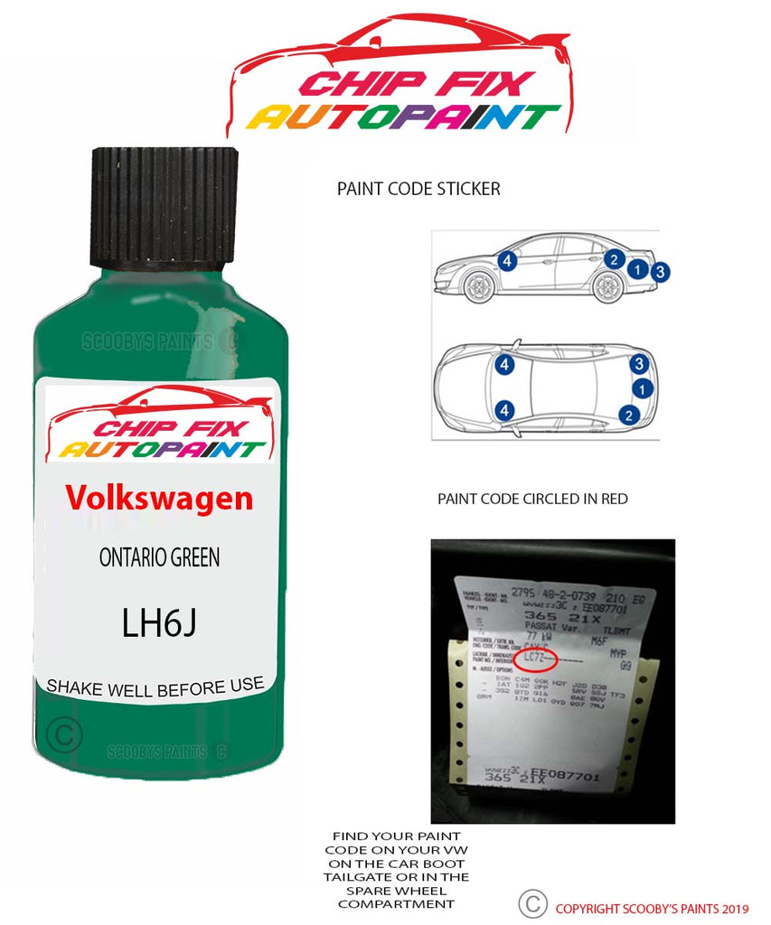 Paint For Vw Amarok Ontario Green LH6J 1998-2020 Green Touch Up Paint