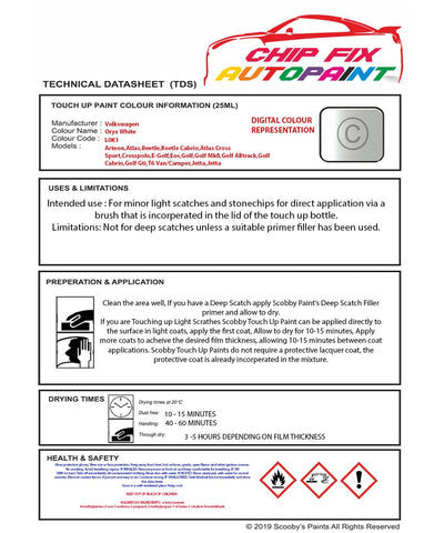 Paint For Vw Beetle Cabrio Oryx White L0K1 2010-2022 White Touch Up Paint