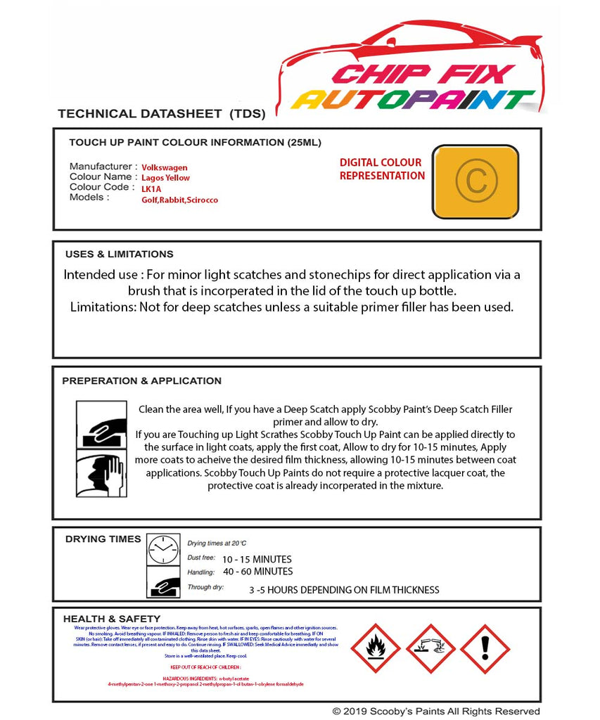 Paint For Vw Golf Lagos Yellow LK1A 1980-1983 Yellow Touch Up Paint