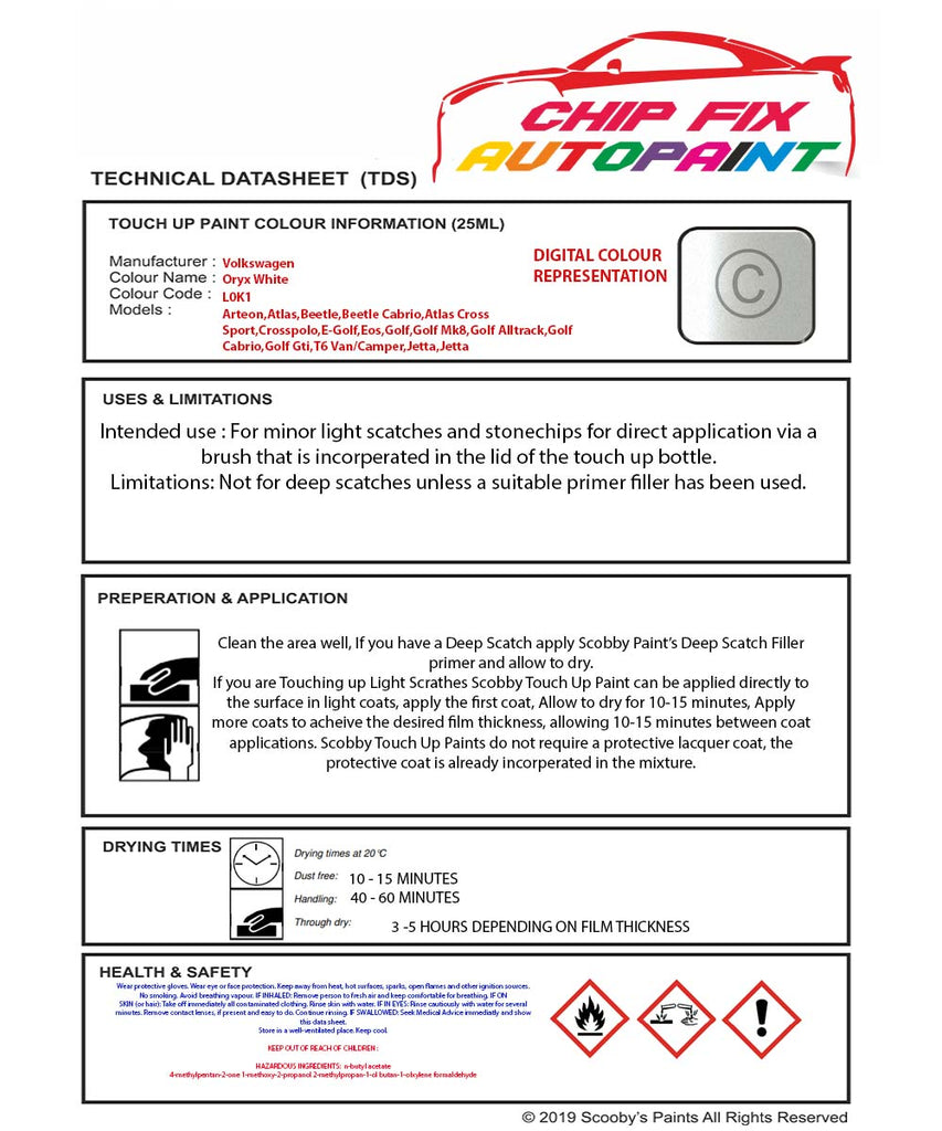 Paint For Vw Multivan Oryx White L0K1 2010-2022 White Touch Up Paint