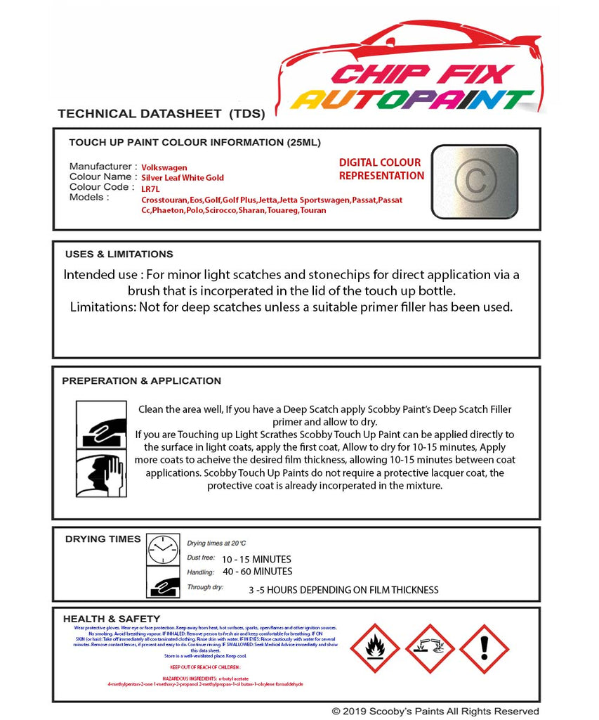 Paint For Vw Passat Silver Leaf White Gold LR7L 2006-2016 Silver/Grey Touch Up Paint