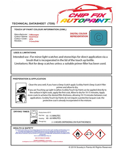 Paint For Vw Polo Dark Petrol LP5L 2017-2020 Blue Touch Up Paint