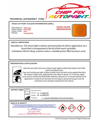 Paint For Vw Polo Hot Orange LD2Z 2009-2016 Orange Touch Up Paint