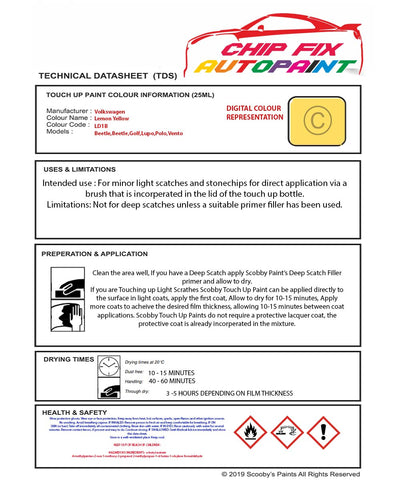 Paint For Vw Polo Lemon Yellow LD1B 1994-2005 Yellow Touch Up Paint