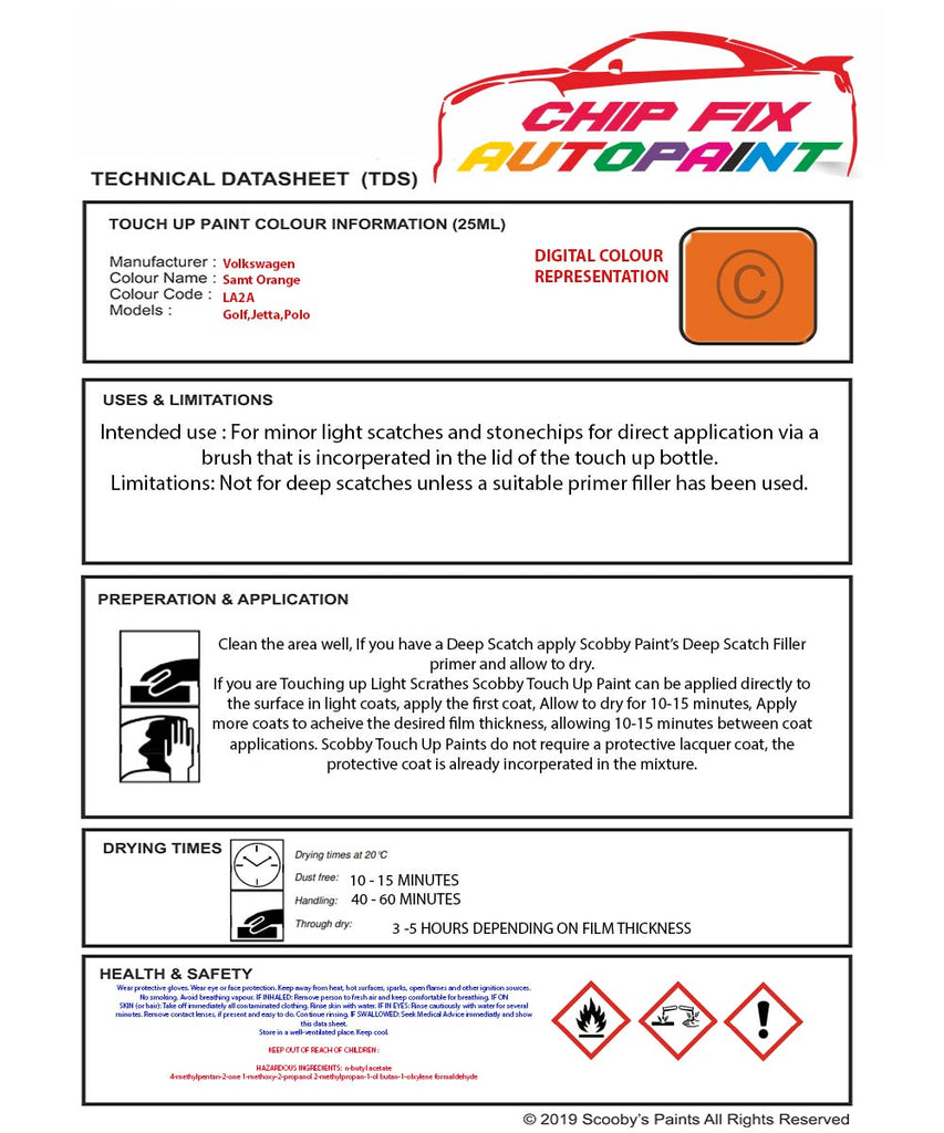 Paint For Vw Polo Samt Orange LA2A 1981-1983 Orange Touch Up Paint