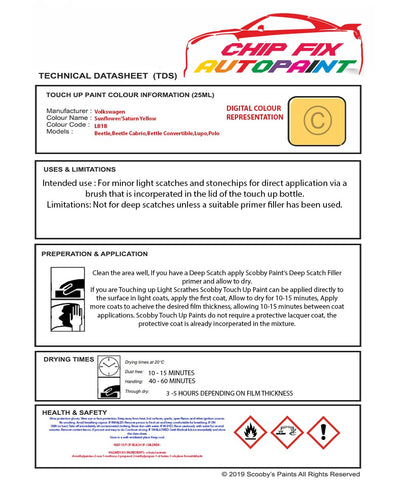 Paint For Vw Polo Sunflower/Saturn Yellow LB1B 2002-2016 Yellow Touch Up Paint