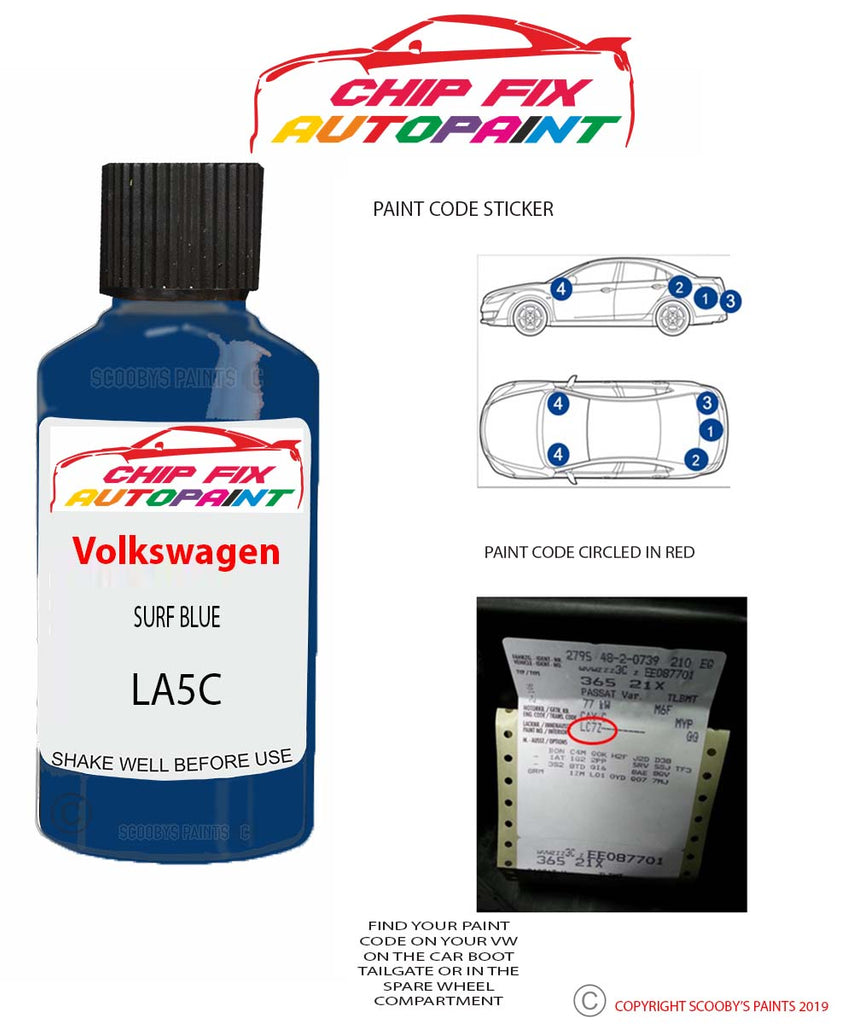 Paint For Vw Polo Surf Blue LA5C 1998-2018 Blue Touch Up Paint