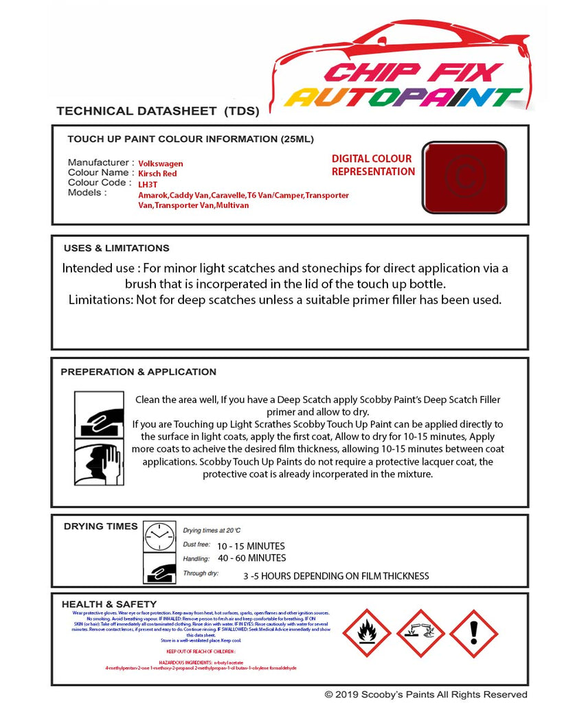 Paint For Vw T6 Van/Camper Kirsch Red LH3T 2014-2021 Red Touch Up Paint