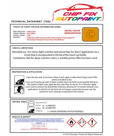 Paint For Vw T6 Van/Camper Raps Yellow LJ1B 1995-2015 Yellow Touch Up Paint