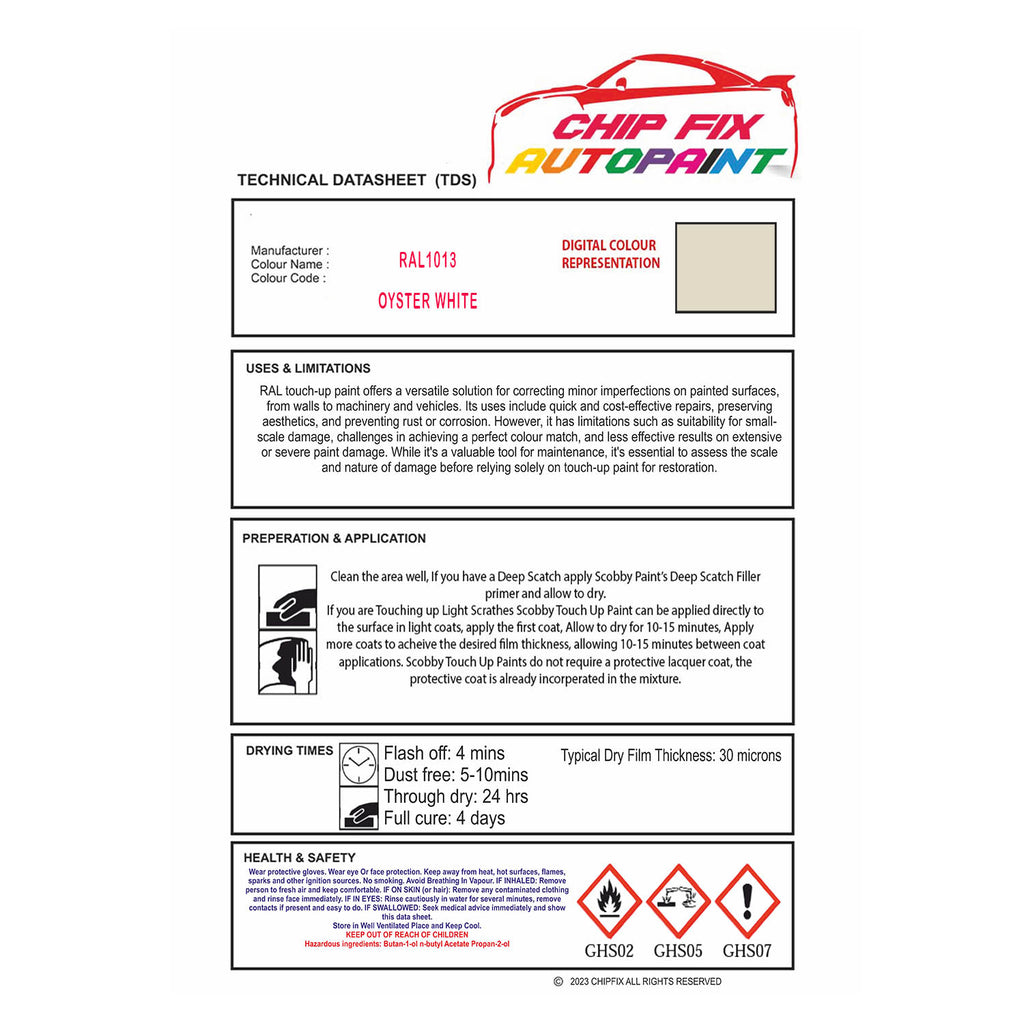 30Ml Of Touch Up Paint Supplied