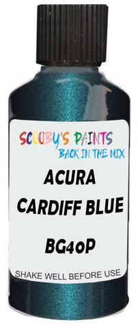 Professionally mixed touch-up paint matched to Acura factory colour BG40P – Cardiff Blue Green Pearl for model years 1998–2001. Ideal for repairing stone chips, light scratches and minor blemishes while helping to prevent corrosion.