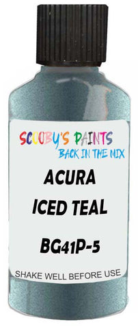 Professionally mixed touch-up paint matched to Acura factory colour BG41P-5 – Iced Teal Pearl for model years 1998–2000. Ideal for repairing stone chips, light scratches and minor blemishes while helping to prevent corrosion.