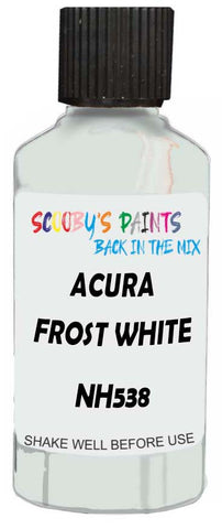 Professionally mixed touch-up paint matched to Acura factory colour NH538 – Frost White for model years 1989–1998. Ideal for repairing stone chips, light scratches and minor blemishes while helping to prevent corrosion.