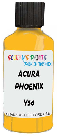 Professionally mixed touch-up paint matched to Acura factory colour Y56 – Phoenix Yellow for model years 1998–2008. Ideal for repairing stone chips, light scratches and minor blemishes while helping to prevent corrosion.