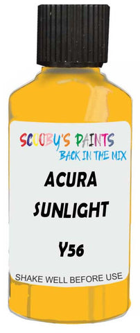 Professionally mixed touch-up paint matched to Acura factory colour Y56 – Sunlight Yellow for model years 1998–2008. Ideal for repairing stone chips, light scratches and minor blemishes while helping to prevent corrosion.