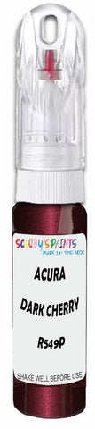 Professionally mixed touch-up paint matched to Acura factory colour R549P – Dark Cherry Pearl Ii for model years 2012–2012. Ideal for repairing stone chips, light scratches and minor blemishes while helping to prevent corrosion.