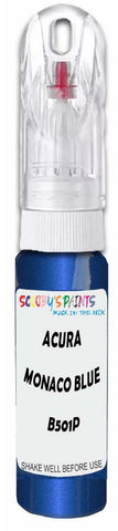 Professionally mixed touch-up paint matched to Acura factory colour B501P – Monaco Blue Pearl for model years 2000–2002. Ideal for repairing stone chips, light scratches and minor blemishes while helping to prevent corrosion.