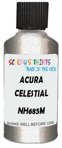 Professionally mixed touch-up paint matched to Acura factory colour NH685M – Celestial Silver Metallic for model years 2004–2006. Ideal for repairing stone chips, light scratches and minor blemishes while helping to prevent corrosion.