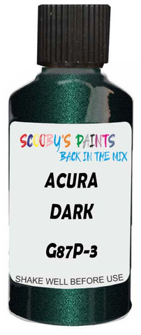 Professionally mixed touch-up paint matched to Acura factory colour G87P-3 – Dark Emerald Pearl for model years 1998–2002. Ideal for repairing stone chips, light scratches and minor blemishes while helping to prevent corrosion.