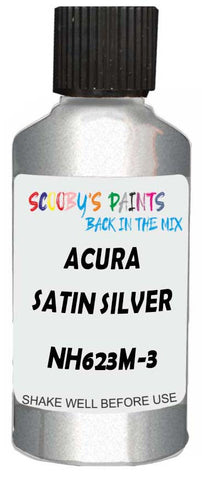 Professionally mixed touch-up paint matched to Acura factory colour NH623M-3 – Satin Silver Metallic for model years 1999–2006. Ideal for repairing stone chips, light scratches and minor blemishes while helping to prevent corrosion.