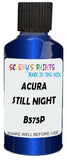 Professionally mixed touch-up paint matched to Acura factory colour B575P – Still Night Pearl for model years 2013–2022. Ideal for repairing stone chips, light scratches and minor blemishes while helping to prevent corrosion.