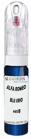 Professionally mixed touch-up paint matched to Alfa Romeo factory colour 441/B – Blu Sirio Metallic for model years 1998–2001. Ideal for repairing stone chips, light scratches and minor blemishes while helping to prevent corrosion.