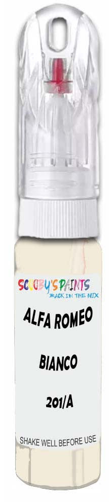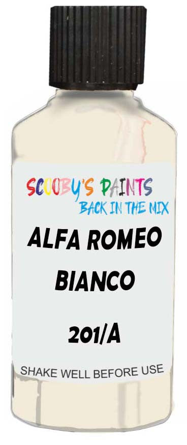 Professionally mixed touch-up paint matched to Alfa Romeo factory colour 201/A – Bianco Polare for model years 1998–2008. Ideal for repairing stone chips, light scratches and minor blemishes while helping to prevent corrosion.