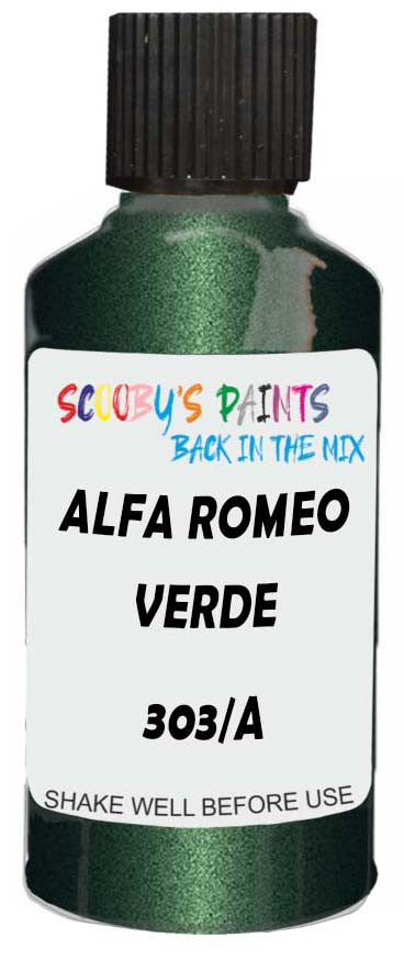 Professionally mixed touch-up paint matched to Alfa Romeo factory colour 303/A – Verde Bottiglia Mica Metallic for model years 1994–1997. Ideal for repairing stone chips, light scratches and minor blemishes while helping to prevent corrosion.