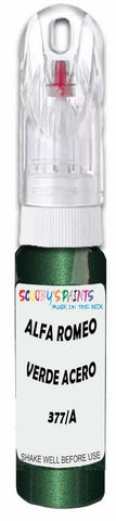 Professionally mixed touch-up paint matched to Alfa Romeo factory colour 377/A – Verde Acero Metallic for model years 2000–2005. Ideal for repairing stone chips, light scratches and minor blemishes while helping to prevent corrosion.